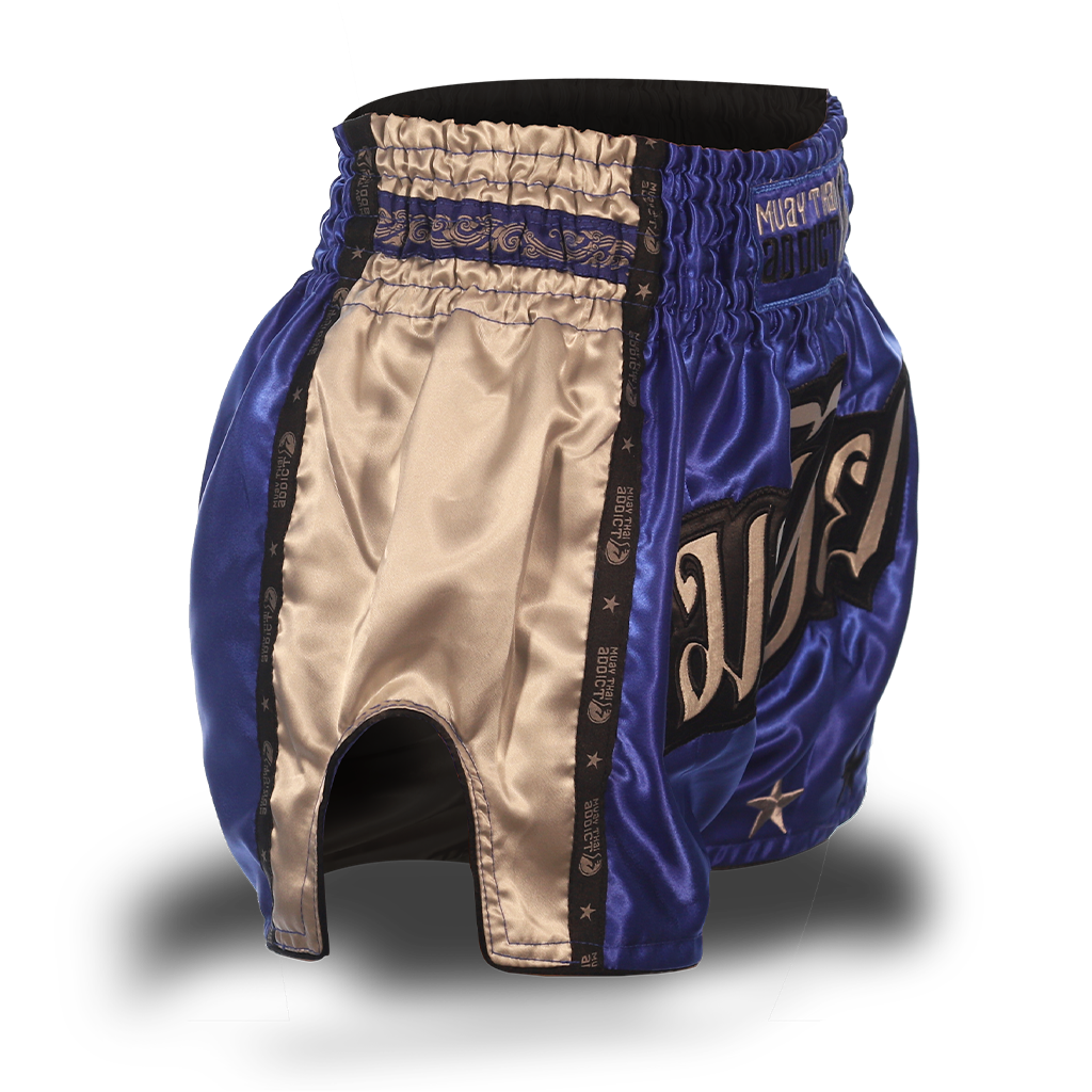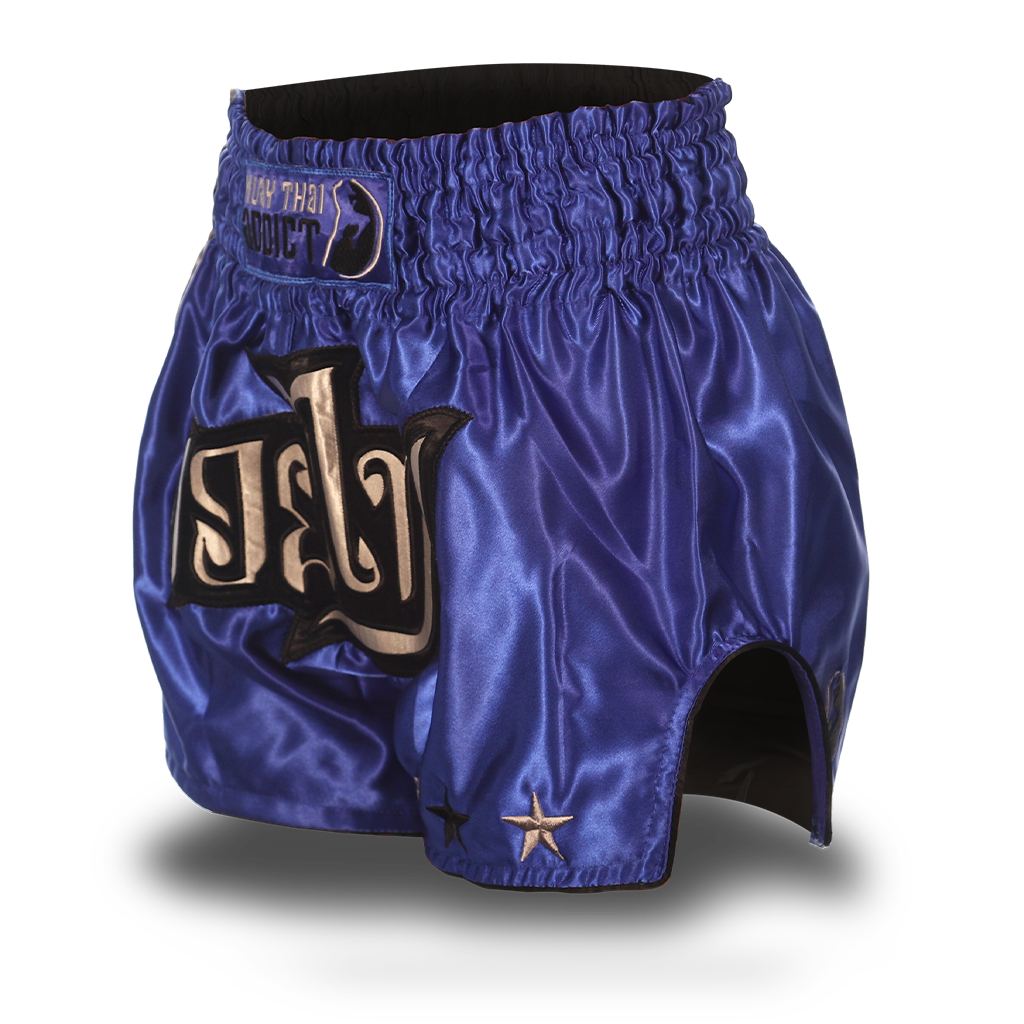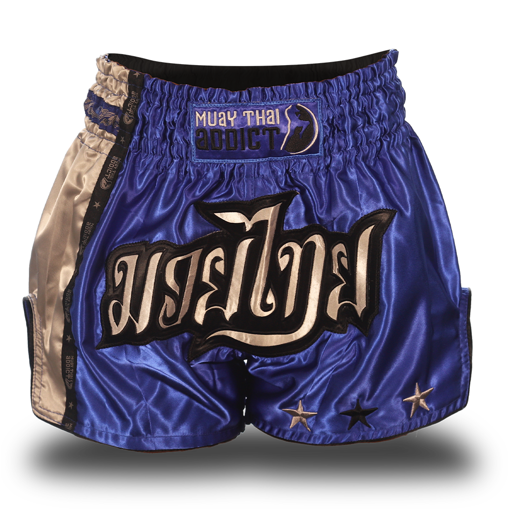 - Blue "Muay Thai" on front with Black Border